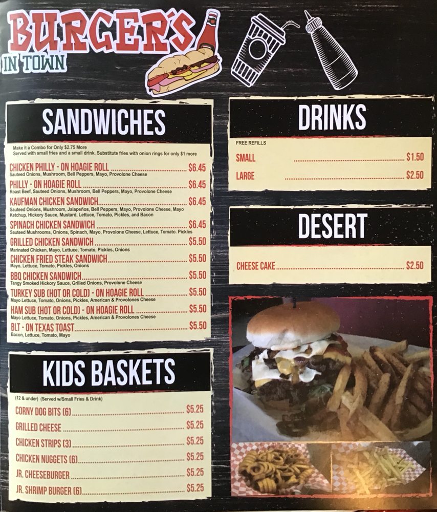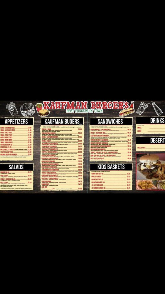 Introducing Kaufman Burgers, a standout in sandwich and burger offerings. Located at 807 S Washington St in Kaufman, TX, this spot offers a cozy and casual atmosphere with amenities like outdoor seating, TV, and a private parking lot. Customers rave about the consistently good food and speedy service. One reviewer praised the fresh veggies, hot hand-cut fries, and delicious burgers. Another couldn't resist the tempting BLT and appreciated the extensive burger selection. The standout dish seems to be the Kaufman double burger, loaded with flavorful toppings. The seasoned fries and crispy onion rings also receive high praise. With expertly crafted burgers, fresh ingredients, and excellent service, Kaufman Burgers is a must-visit for burger enthusiasts looking for a top-notch dining experience.
